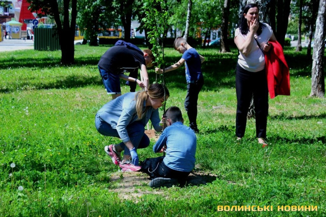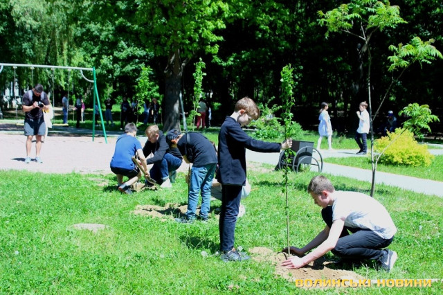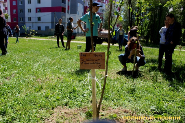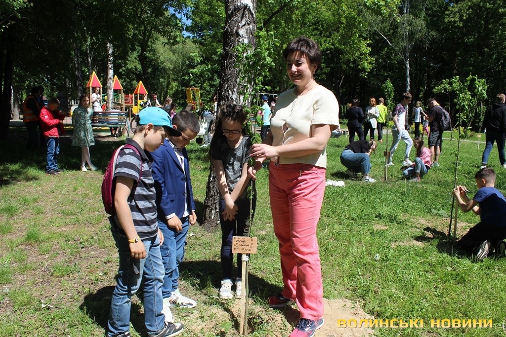 «Ми уже були на висаджуванні «Алеї життя» біля обласної лікарні, бо в мене дитина з пересадженою печінкою. Тож вирішили підтримувати далі такі заходи. Це дуже хороша ініціатива і для дітей, і для дорослих. Це згуртовує школярів, бо спільна робота зближує, а ще так легше достукатися до них, щоб вони берегли природу, не нищили її, адже в нас має бути зелене місто», - каже вона.Організатором акції стала ГО «Дім еволюції». Її засновниця Руслана Кот розповідає, що нині – завершальний етап марафону «Тreeevolution», в рамках якого діти вчилися розмовляти англійською мовою, вчилися людяності, вчилися любити і поважати свою планету. Загалом у рамках марафону, який паралельно відбувається у двох містах – Луцьку та Корцеві, учасники висадили цієї весни близько 300 дерев.«Цього року відбулась реалізація благодійного навчального марафону «Тree evolution». Це була ідея дітей, щоб проявити любов до себе, до інших людей і до нашої планети. На першому етапі діти виконували онлайн-завдання, дізнавалися багато нового про себе, своє оточення. А на другому етапі ми висаджували дерева, щоб на нашій планеті було більше кисню, більше ресурсів для життя. Таким чином ми можемо подякувати нашій планеті за те, що вона нам дарує ці ресурси. Ми вже висадили у центральному парку більше 200 тополь і 35 сакур, на території ЛНТУ студенти садили берези і в місті Корець діти садили червоні дуби. Також у нас виникла спонтанна ідея висадити дерева на території 40 кварталу. До цього дійства долучилися й наші інвестори: Будівельна компанія ЛДБК презентувала ці саджанці, щоб діти отримали можливість проявити любов до своєї планети», - каже організаторка.Дерева висадили неподалік від ЖК «Caramel Residence», а 15 з них – у формі літери «Л», аби подякувати меценату.