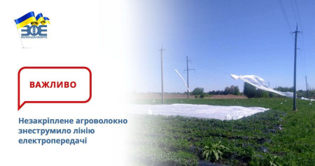 Закликаємо господарів не легковажити з кріпленням агроволокна. Щоб цей матеріал працював ефективно, агроволокно треба надійно закріпити на поверхні ґрунту. Таким чином ви збільшите тривалість його використання та головне для енергетиків – мінімізуєте ризики знеструмлень ліній електропередачі», – йдеться у повідомленні.