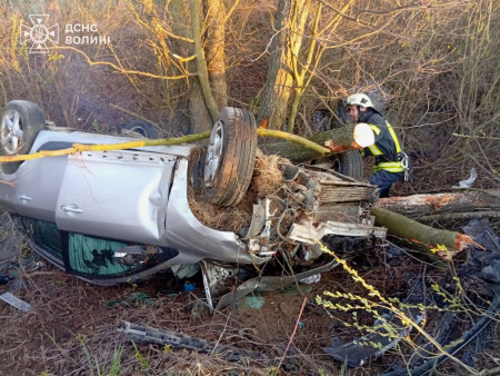 Легковий автомобіль, у якому перебували водій та пасажирка, зіткнувся з деревом, інформує ДСНС Волині.