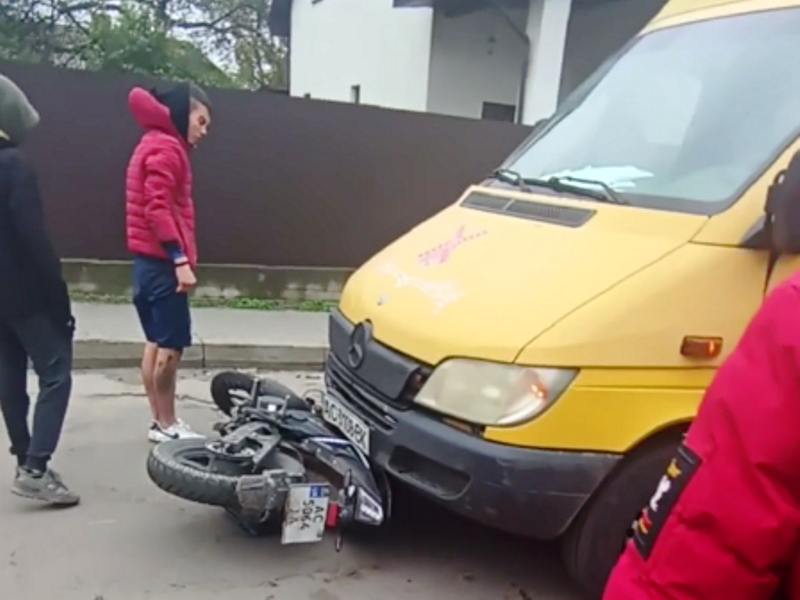 Зі слів очевидців, бус зіткнувся з мотоциклом. Травмувався водій двоколісного.