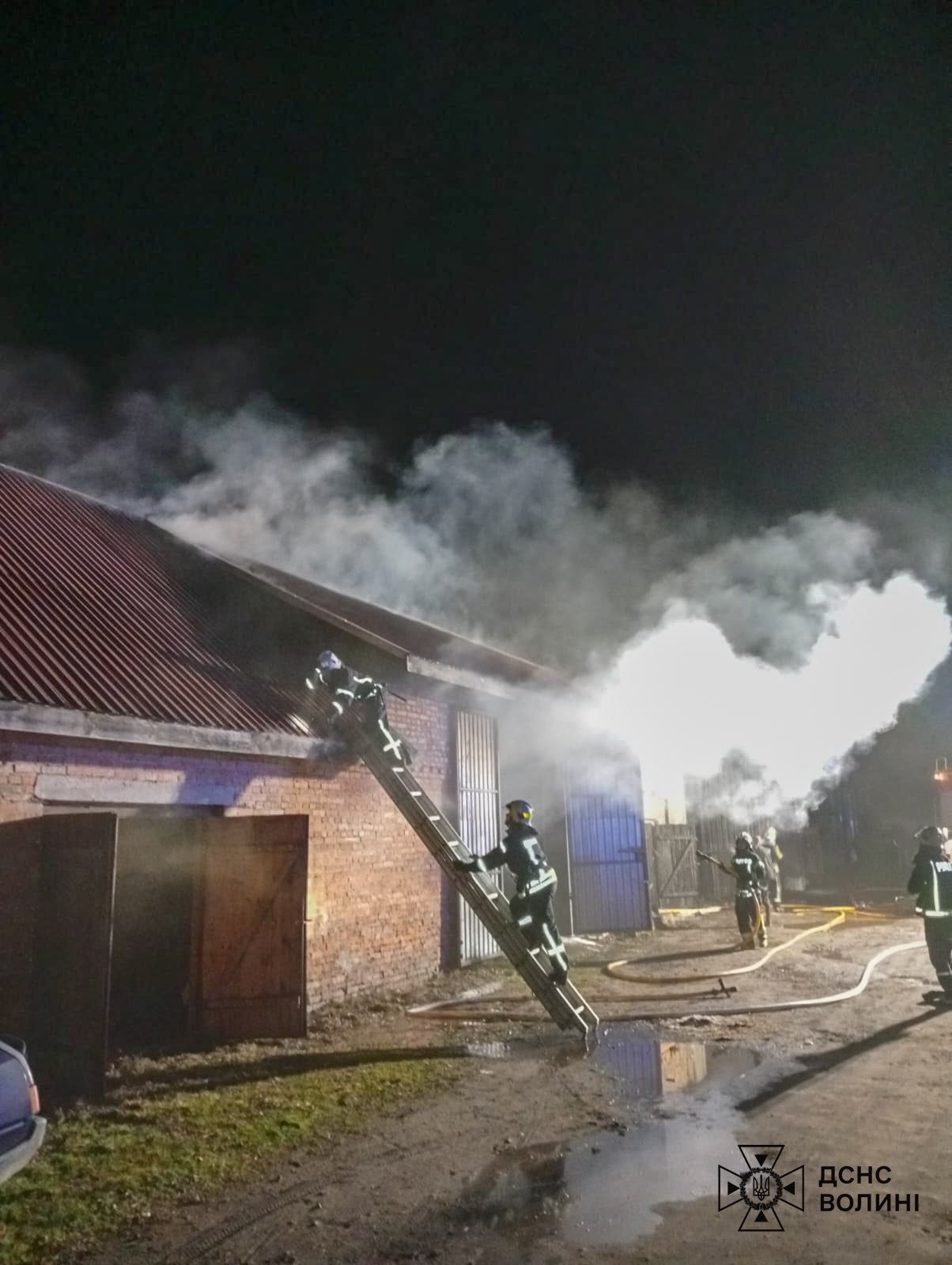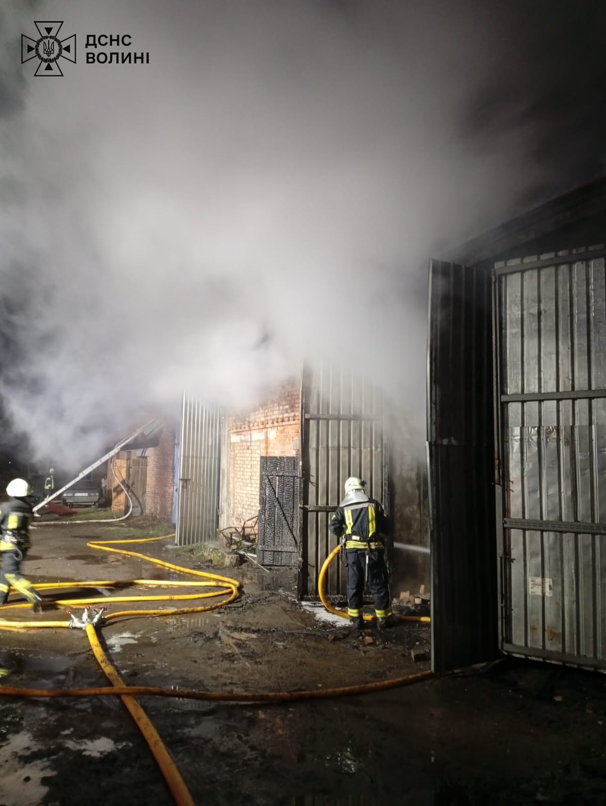 Того ж дня о 21:04 рятувальники отримали повідомлення про пожежу в селі Кременець Копачівської громади Луцького району. Загорілася господарська споруда з двома суміжними гаражами.