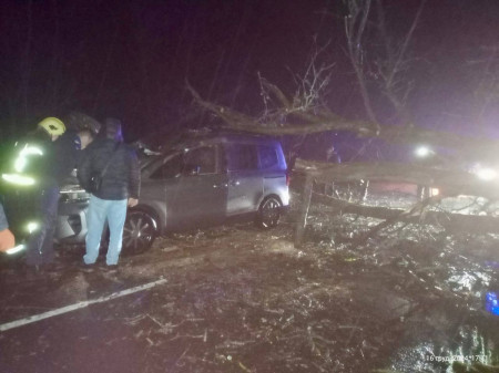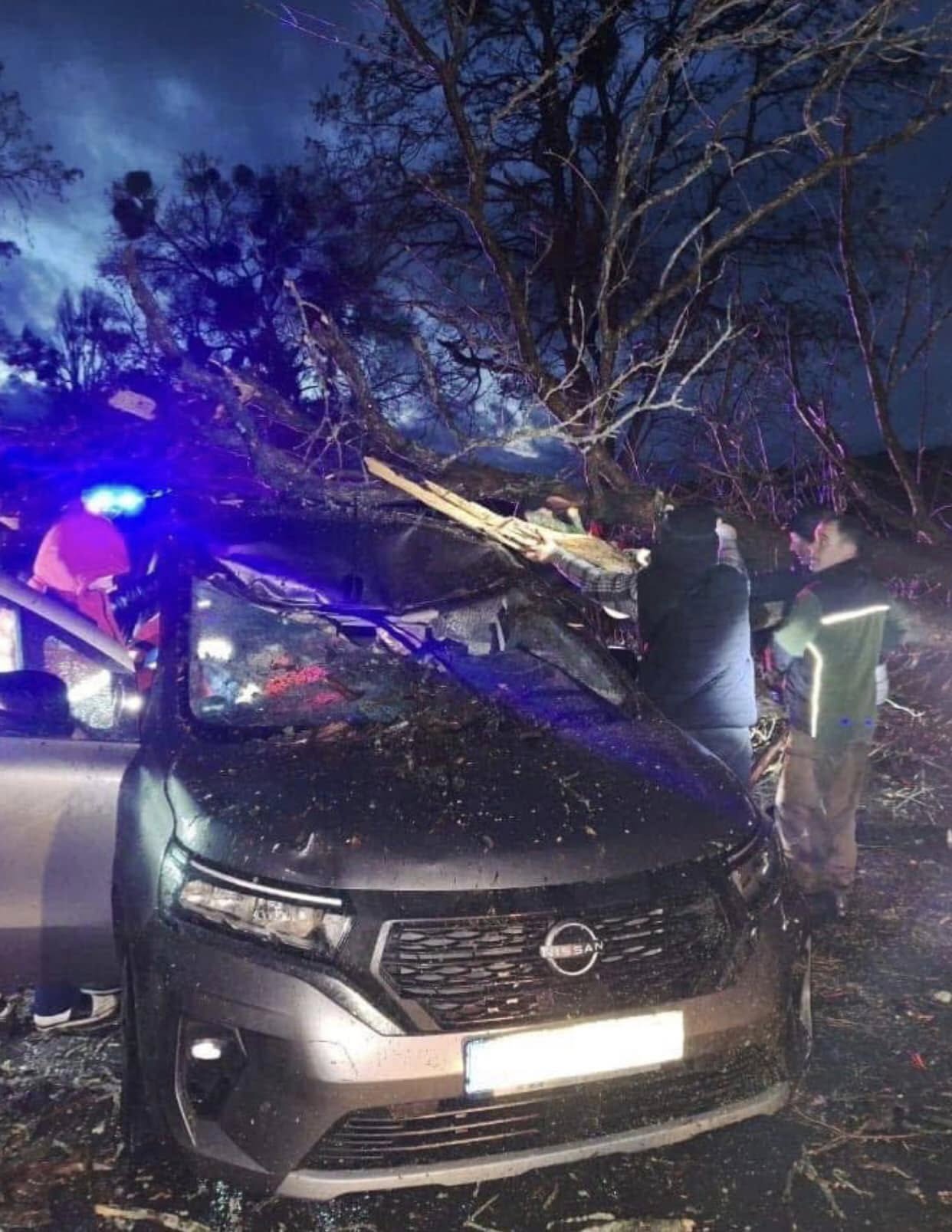 Як повідомили у поліції Волині, ДТП сталася о 16.30: на транспортний засіб упало дерево та розчавило лобове скло. Травми отримав водій-іноземець, пасажирка майже не постраждала.