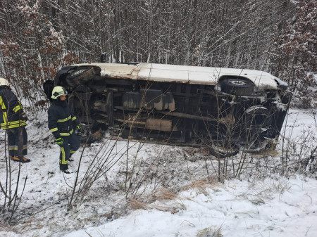 Сьогодні зранку в с. Копачівка Луцького району вантажний бус злетів з дороги, після чого перевернувся.