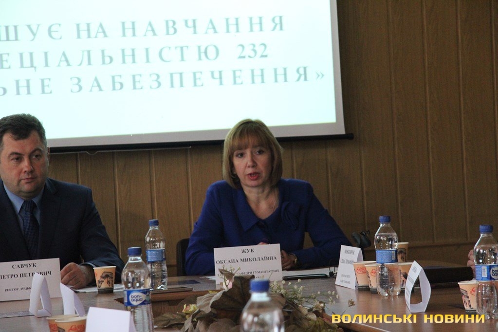«На Волині ця спеціальність відкривається вперше. На відміну від спеціальності соціальна робота, соціальне забезпечення має більш широкий спектр знань. Підготовка спеціалістів з цієї спеціальності буде складатиметься з 3 блоків: правових, економічних та соціально-гуманіарних дисциплін», - резюмувала Оксана Жук.