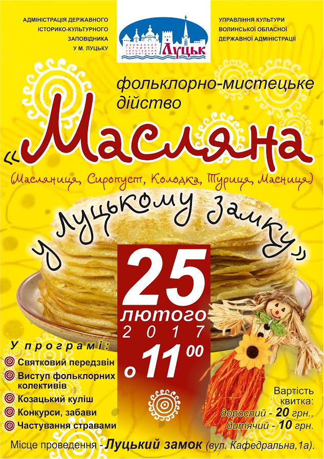Фольклорно-мистецьке дійство «Масляна» відбудеться у Луцькому замку в суботу, 25 лютого.