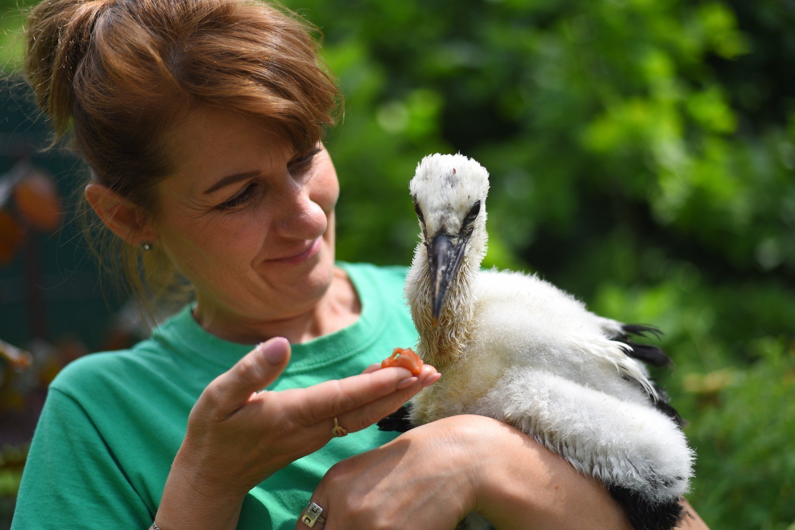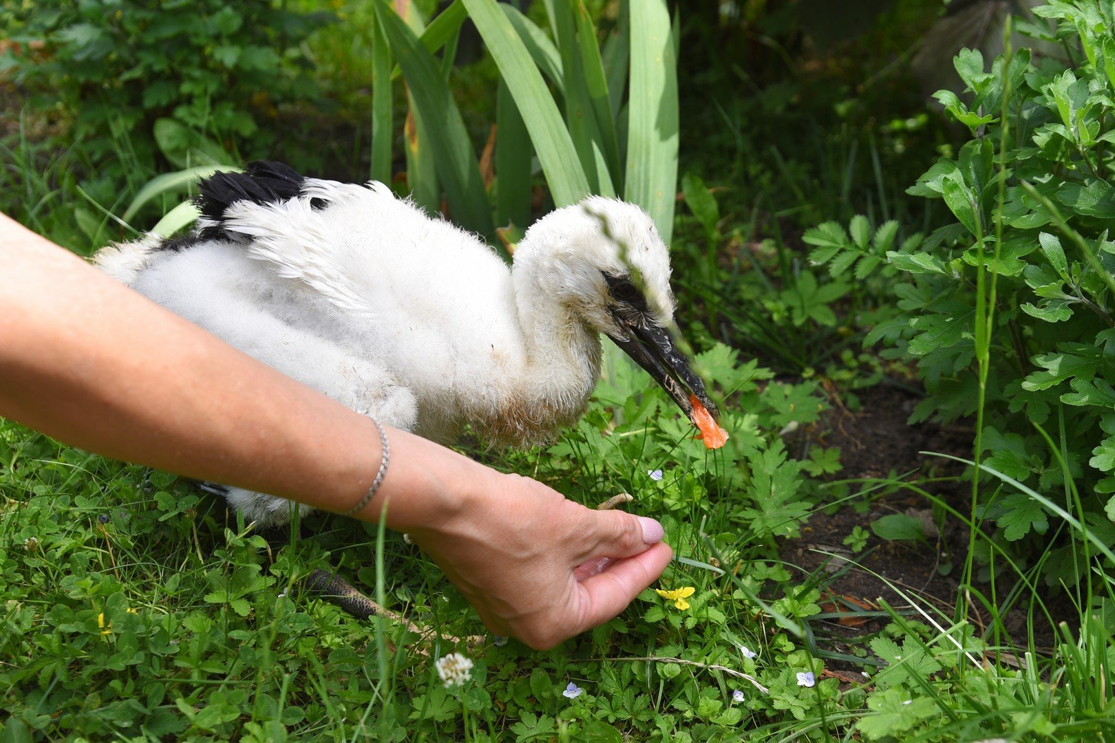 Кілька тижнів тому до звіринцю привезли двох лелеченят, яких батьки викинули з гнізда. На жаль, одне пташеня виходити не вдалося. Як з’ясувалося під час розтину, у шлунку пташеняти було і скло, і затверділі грудки глини.
