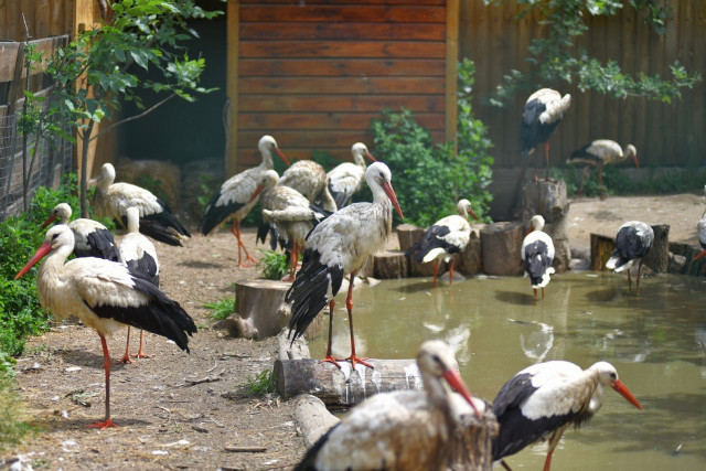 А загалом тут – 26 врятованих лелек. Основна частина – травмовані, тож літати не можуть. Вони житимуть у Луцькому зоопарку до своєї природної смерті. Але частина цілком одужали. Проте за той час так звикли до комфорту та постійного харчування, що просто не відлітають. Лише іноді відлучаються з території.