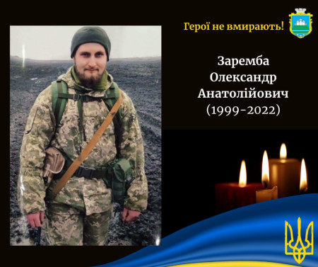 У Луцьку прощатимуться з уродженцем села Великий Обзир – Зарембою Олександром Анатолійовичем, 1999 року народження.