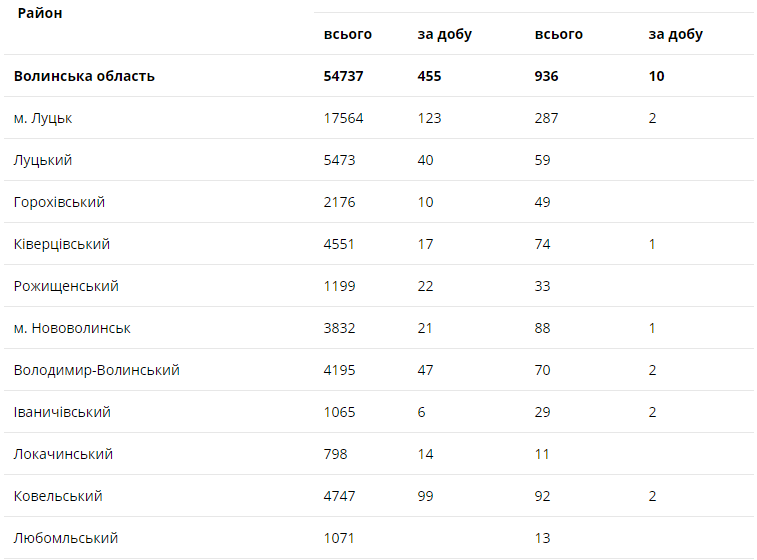 У Луцьку 123 людини захворіли на COVID-19, у районах – 332, 10 людей померли