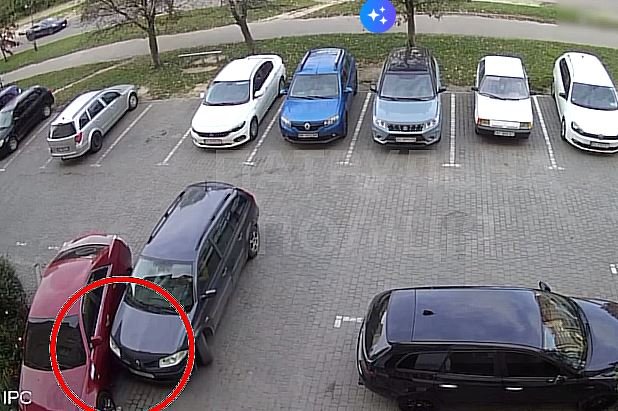 На місці події заявник розповів, що помітив на своєму авто марки Cadillac пошкодження лакофарбового покриття, тому одразу ж переглянув камери спостереження. На відео було видно, як керманич автомобіля Renault під час руху заднім ходом кілька разів здійснив наїзд на його автомобіль, що був припаркований поруч.