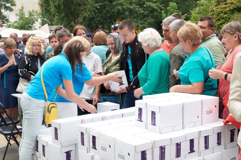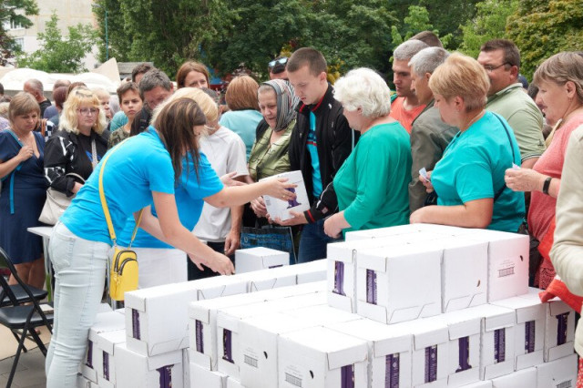 19 липня управління соціальних служб для сім’ї, дітей і молоді Луцької міської ради провело першу акцію. 200 сімей, у яких виховуються діти з інвалідністю, та багатодітні родини отримали по 25 кілограмів борошна, 10 кілограмів гороху, а також рослинне молоко від Дитячої місії України.