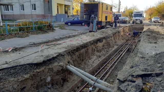 На вулиці Декабристів, 16 міняють чотири труби на відрізку 150 метрів. Слюсар Микола Поліщук каже: працюють на цій ділянці майже місяць.