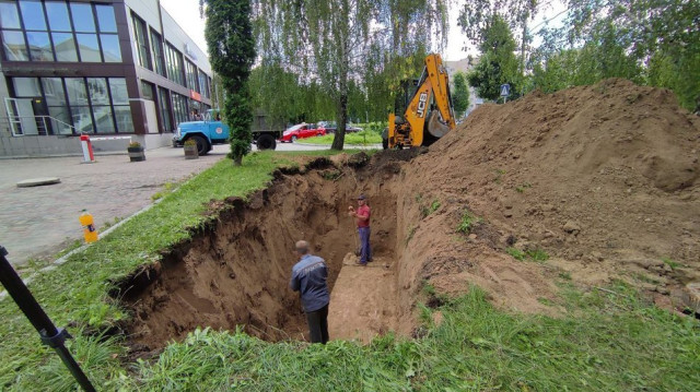 Земляні роботи наразі проводять за місцем витоку, який знайшли у результаті гідравлічного випробування мереж на проспекті Соборності.