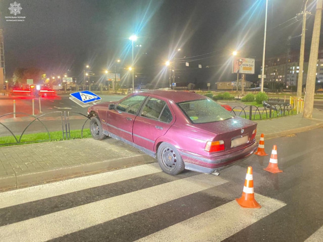 З’ясувалося, що водій автомобіля BMW не вибрав безпечну швидкість руху, внаслідок чого здійснив наїзд на дорожній знак.