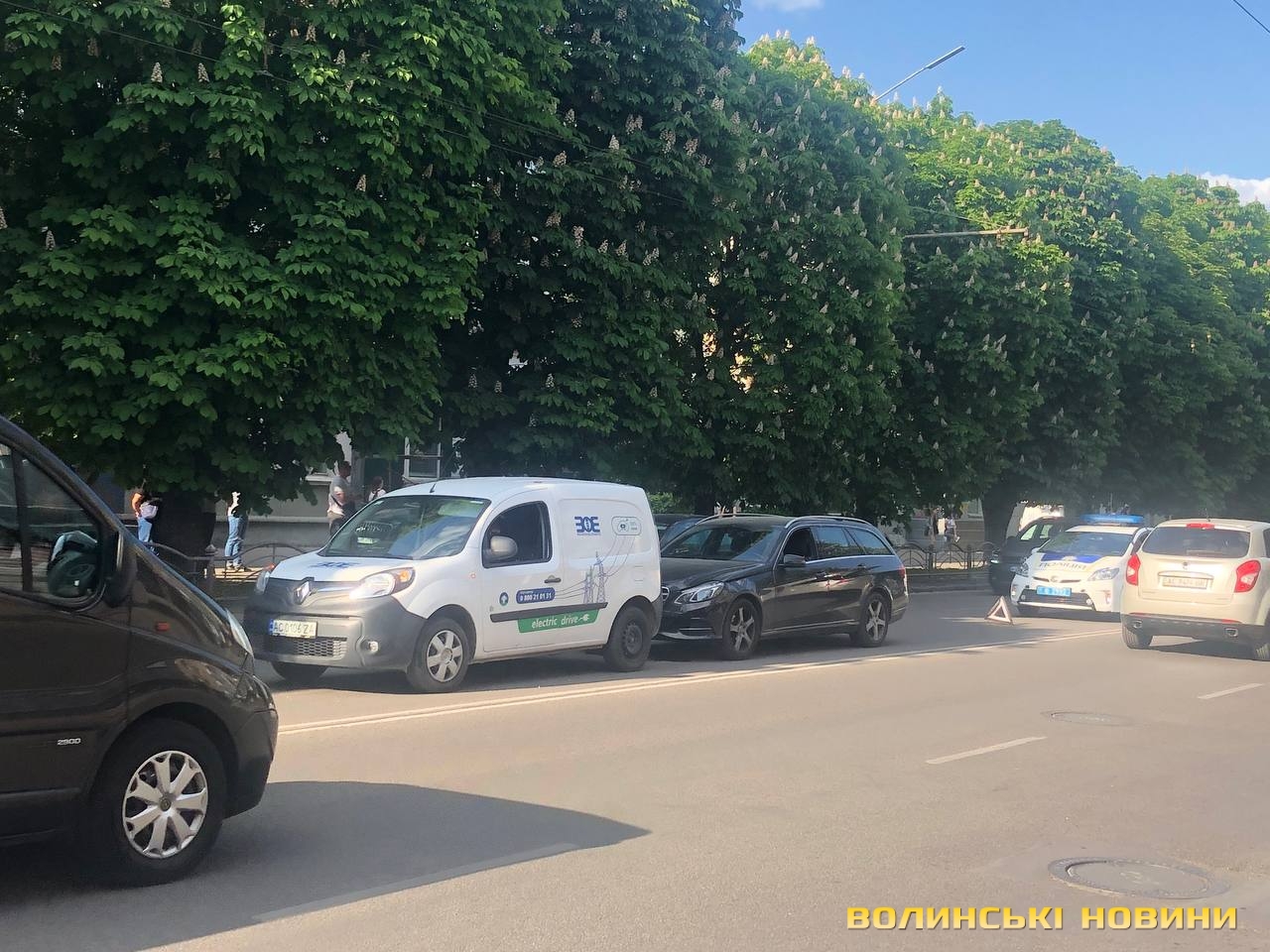Автомобіль Mercedes врізався у Renault з логотипом «Волиньобленерго».
