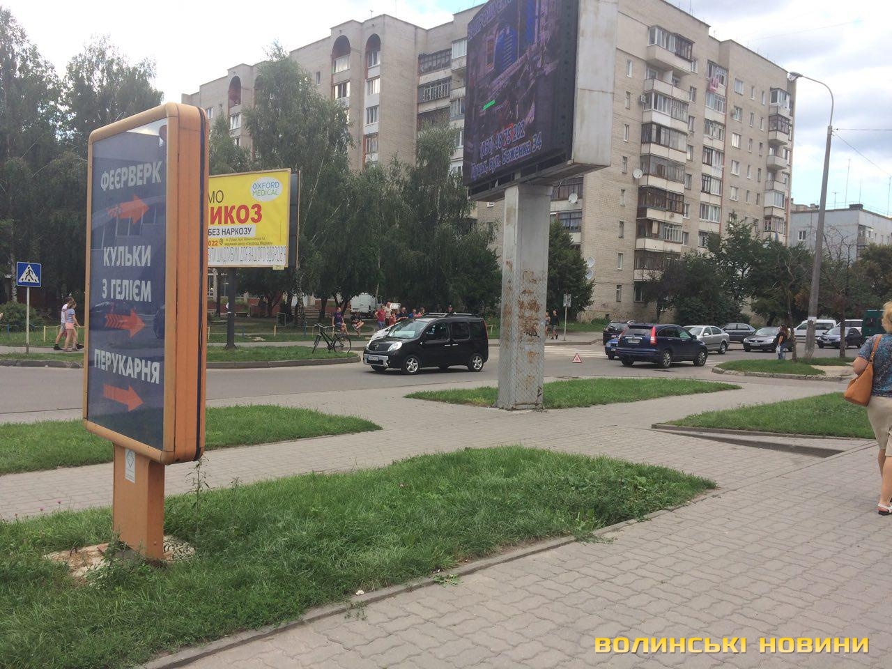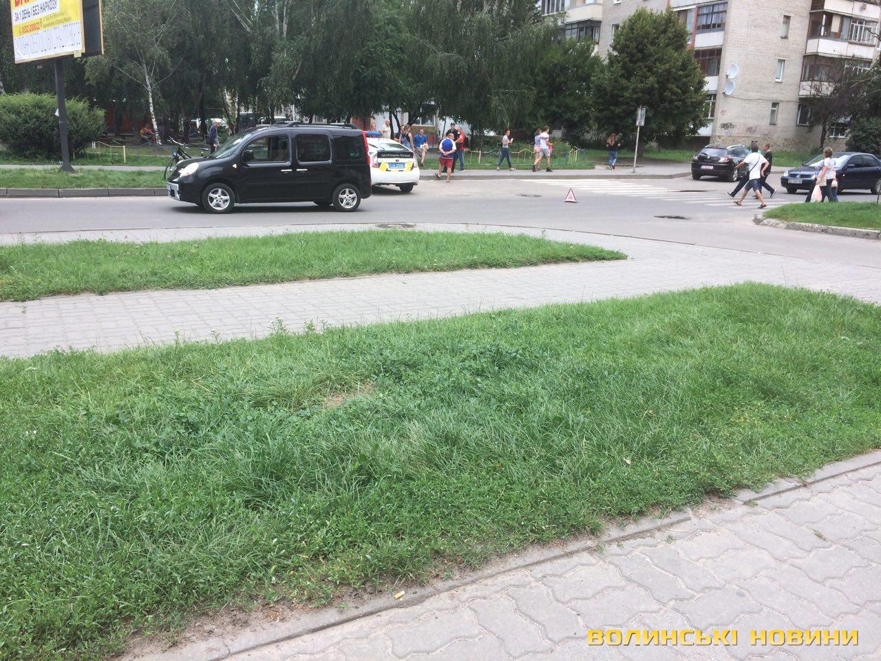 У Луцьку на вул. Кравчука, біля ТЦ «Слон», Renault ледь не збило велосипедистку.
