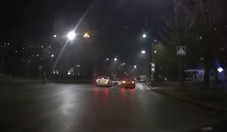З відеозапису видно, як водій на чималій швидкості збиває дівчину, яка переходить дорогу пішохідним переходом. Після цього авто зупинилося, але водій побачив, що пішохідка сама піднялась, і поїхав далі.