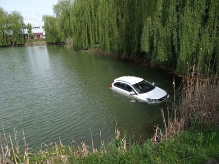 За їхніми словами, водій забув поставити авто на ручне гальмо, внаслідок чого легковик в’їхав у водойму. Пригода трапилась поблизу комплексу «Адреналін Сіті» вранці 19 травня.