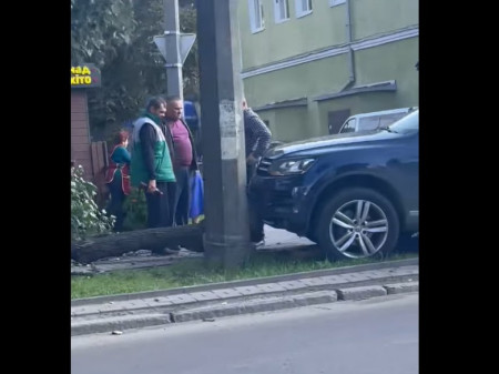 ДТП сталася на перехресті вулиць Ковельської та Миру в Луцьку: Volkswagen Touareg з'їхав з проїжджої частини на тротуар і врізався у дерево.