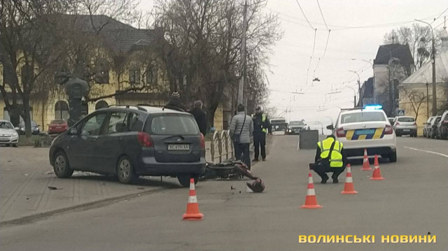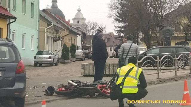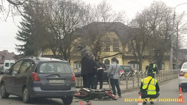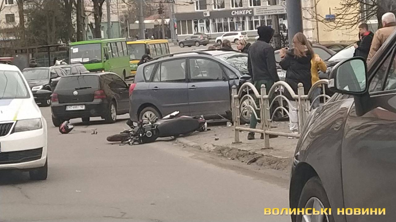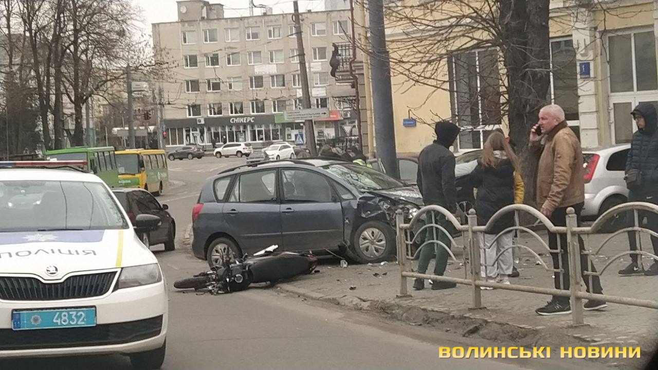 У Луцьку авто, заїжджаючи на парковку, збило мотоцикліста. Фото