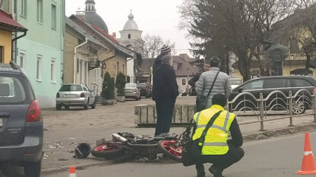 З їхніх слів, водій автівки Toyota Corolla заїжджав на парковку й допустив зіткнення з мотоциклістом.