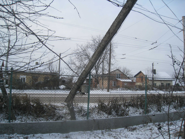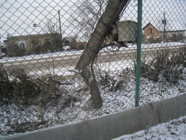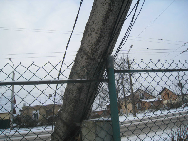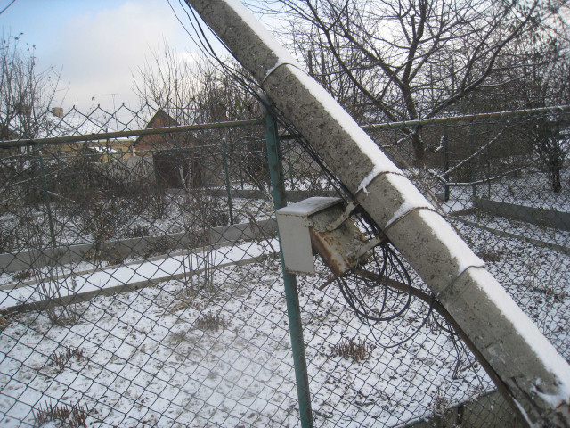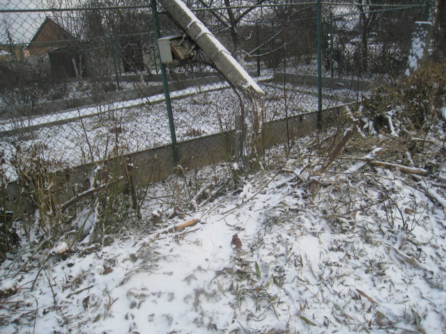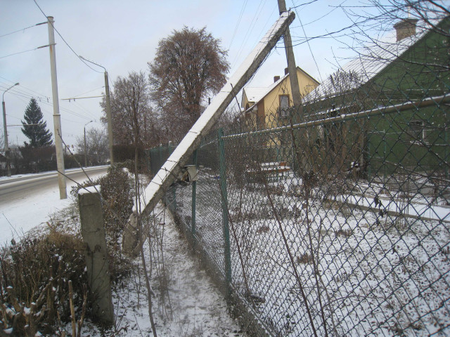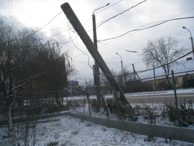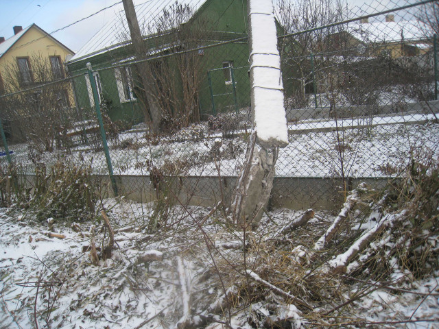 З її слів, невідоме авто 1 грудня на вулиці Ковельській, 110 збило бетонну опору, яка впала на її паркан і тримається на невеличкому стовпчику.