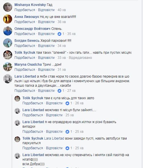Під дописом почали з'являтися обурливі коментарі лучан, яких вразила така нахабність водія. Хоча були й такі ,які з розумінянм віднесился до даного випадку і спробували захищати "автохама".