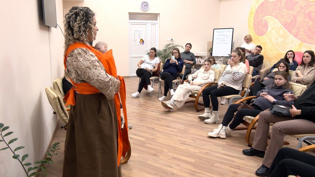 3 жовтня в студії щасливого батьківства у Волинському перинатальному центрі навчали батьків замотувати немовлят у слінг.