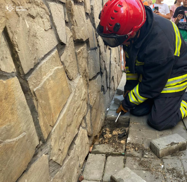Цього «мешканця» виявили жильці будинку, повідомили голові ОСББ, а та викликала рятувальників. На місце прибули працівники чергової варти групи рятувальних робіт аварійно-рятувальний загін спеціального призначення м. Луцьк.