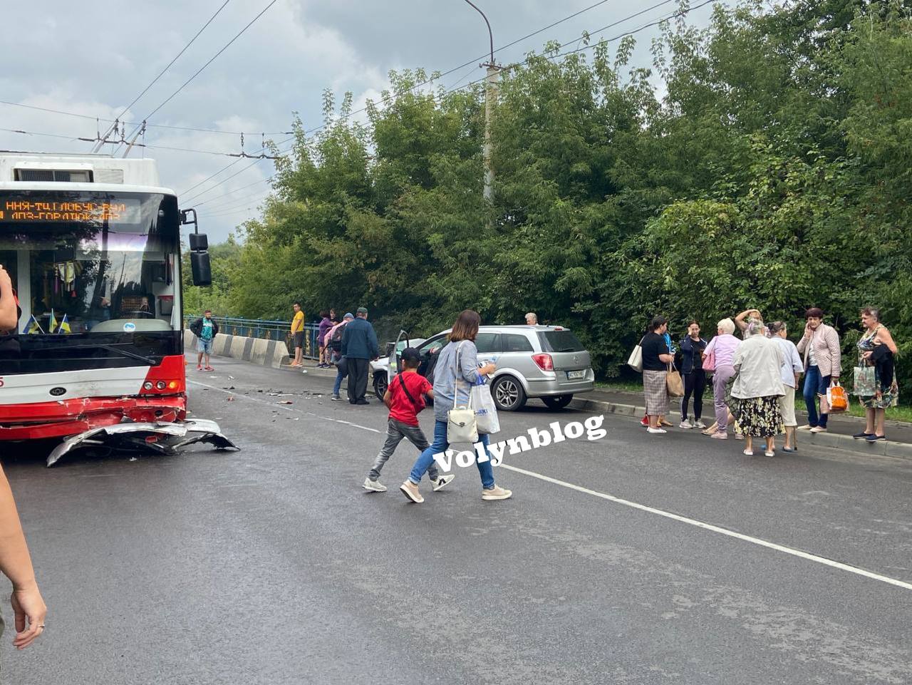 У Луцьку біля мосту зіткнулися тролейбус та авто. Відео