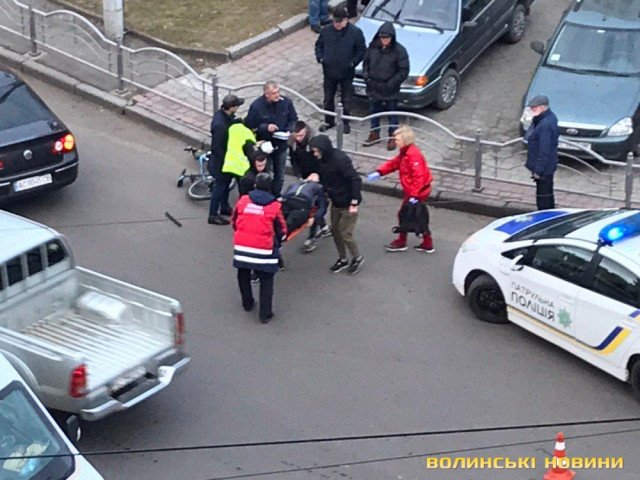 У Луцьку біля облмуздрамтеатру автівка збила велосипедиста. Фото