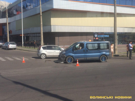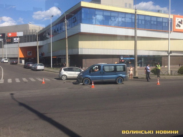 У Луцьку сьогодні, 13 серпня, біля «Порт Сіті», зіткнулися легковик та бус.