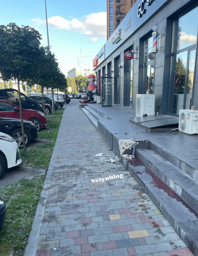 У Луцьку біля ЖК «Яровця» авто вилетіло на тротуар та застрягло на сходах будинку