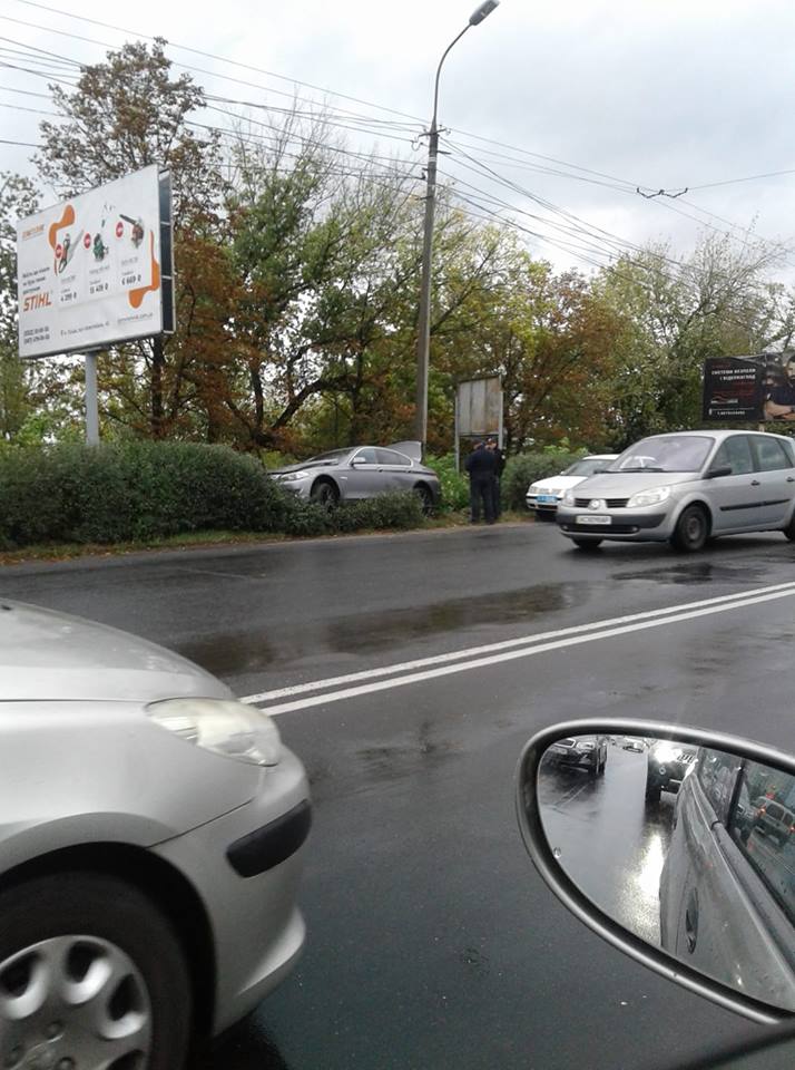 "Біля Модерну на кущі "залетіла" БМВ. Ранок понеділка, вже традиційно, починається не з кави", - йдеться у дописі.