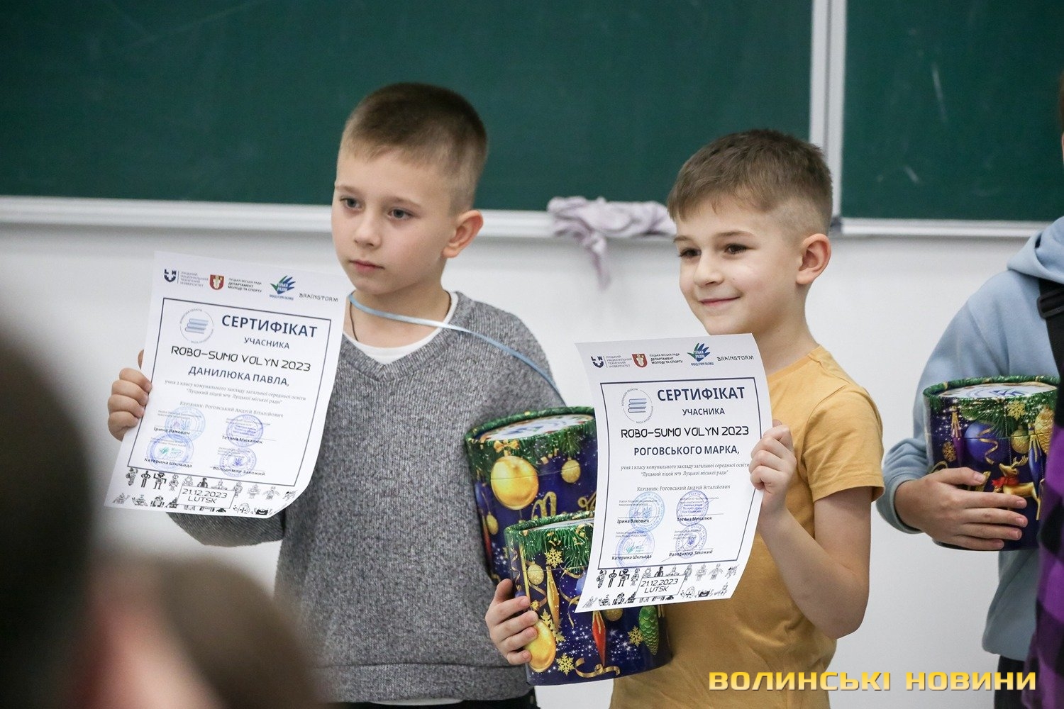 «Мала академія наук є нашим надійним партнером. Ми постійно підтримуємо заходи, в яких беруть участь юні науковці, даруючи їм подарунки і таким чином мотивуючи до розвитку. Такі турніри сприяють розвитку дітей та освітнього процесу. Інтелектуальна молодь – це майбутнє України», – сказала Світлана Мілінчук.У категорії «Дистанційно-керовані роботи» переміг учень восьмого класу Нововолинського наукового ліцею Волинської обласної ради Адріан Макарчук. А в категорії «Автономні роботи» перемогу здобув п’ятикласник Андрій Шкарлатюк з Ківерцівського ліцею №3.Усі учасники та переможці турніру отримали солодкі подарунки від Фонду Ігоря Палиці «Тільки разом».