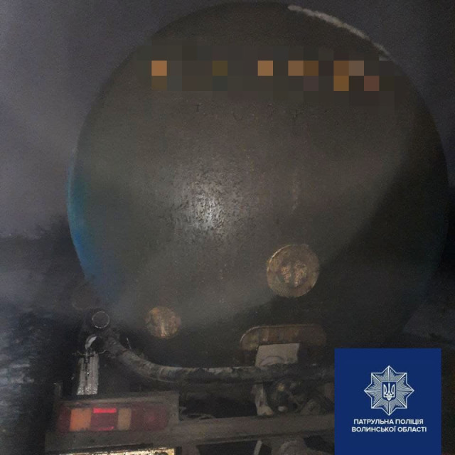 Сьогодні під час нічного патрулювання на вулиці Гущанській у Луцьку патрульні помітили автомобіль MAN із цистерною Trailor. Біля якої 40-річний чоловік змотував шланги, які йшли в канаву поблизу дороги. На місці стояв їдкий запах, який, ймовірно, йшов від рідини зеленого кольору, що витікала із цистерни.