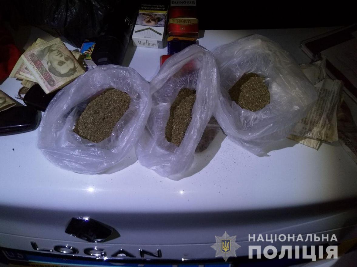 Під час поверхневого огляду у даного чоловіка було виявлено паперовий згорток із речовиною рослинного походження зеленого кольору та у правому рукаві светра три поліетиленових пакети із схожою речовиною.