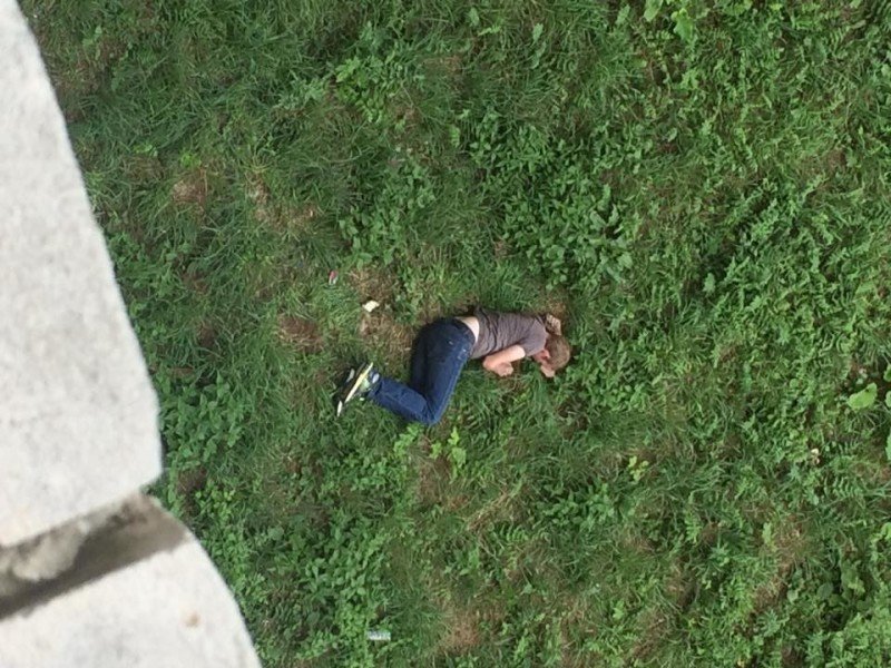 «Сидимо в гостях в друзів, а раптом ГУП за вікном. Мужик якийсь впав з 6 поверху», – йдеться у дописі.