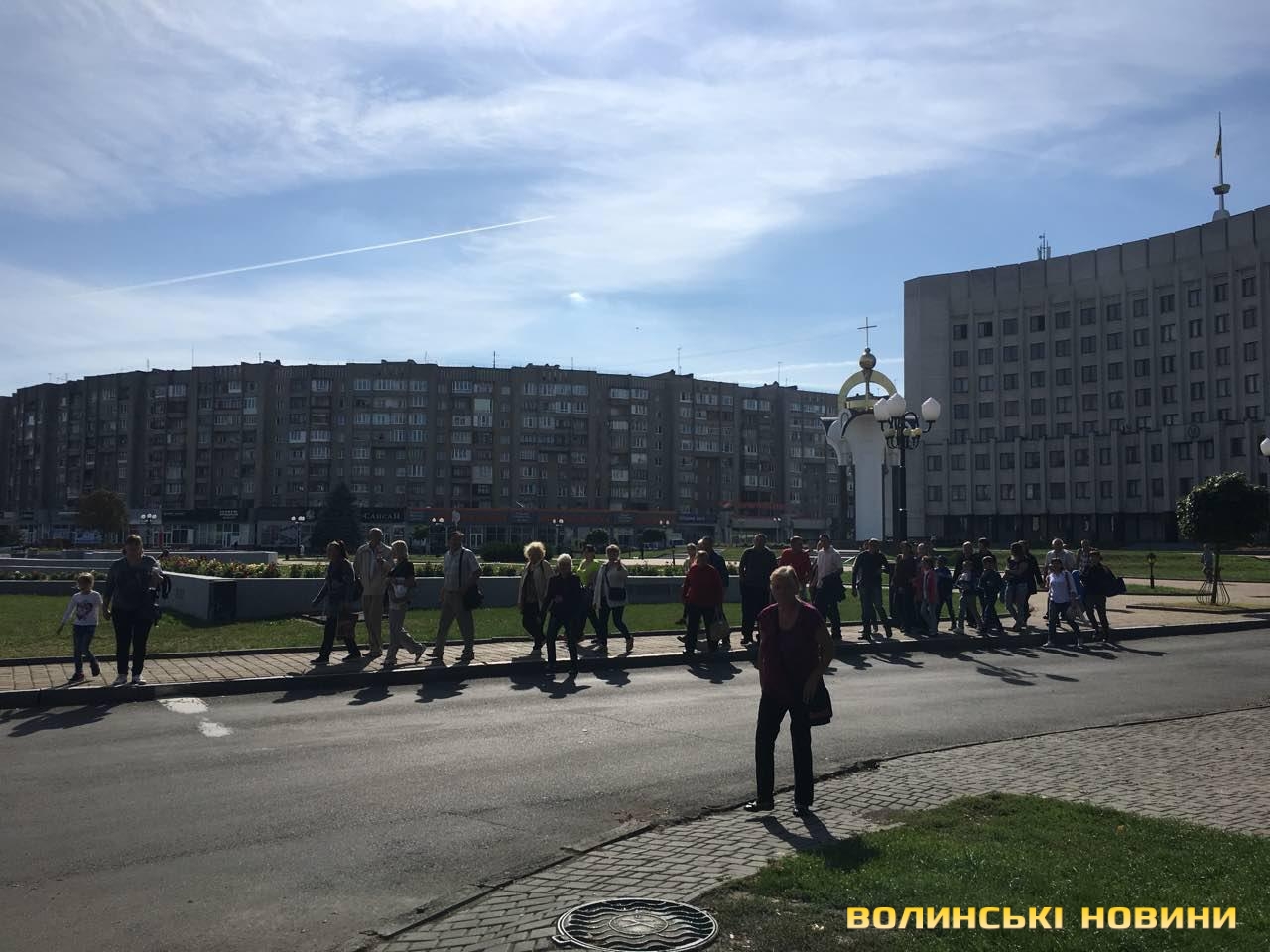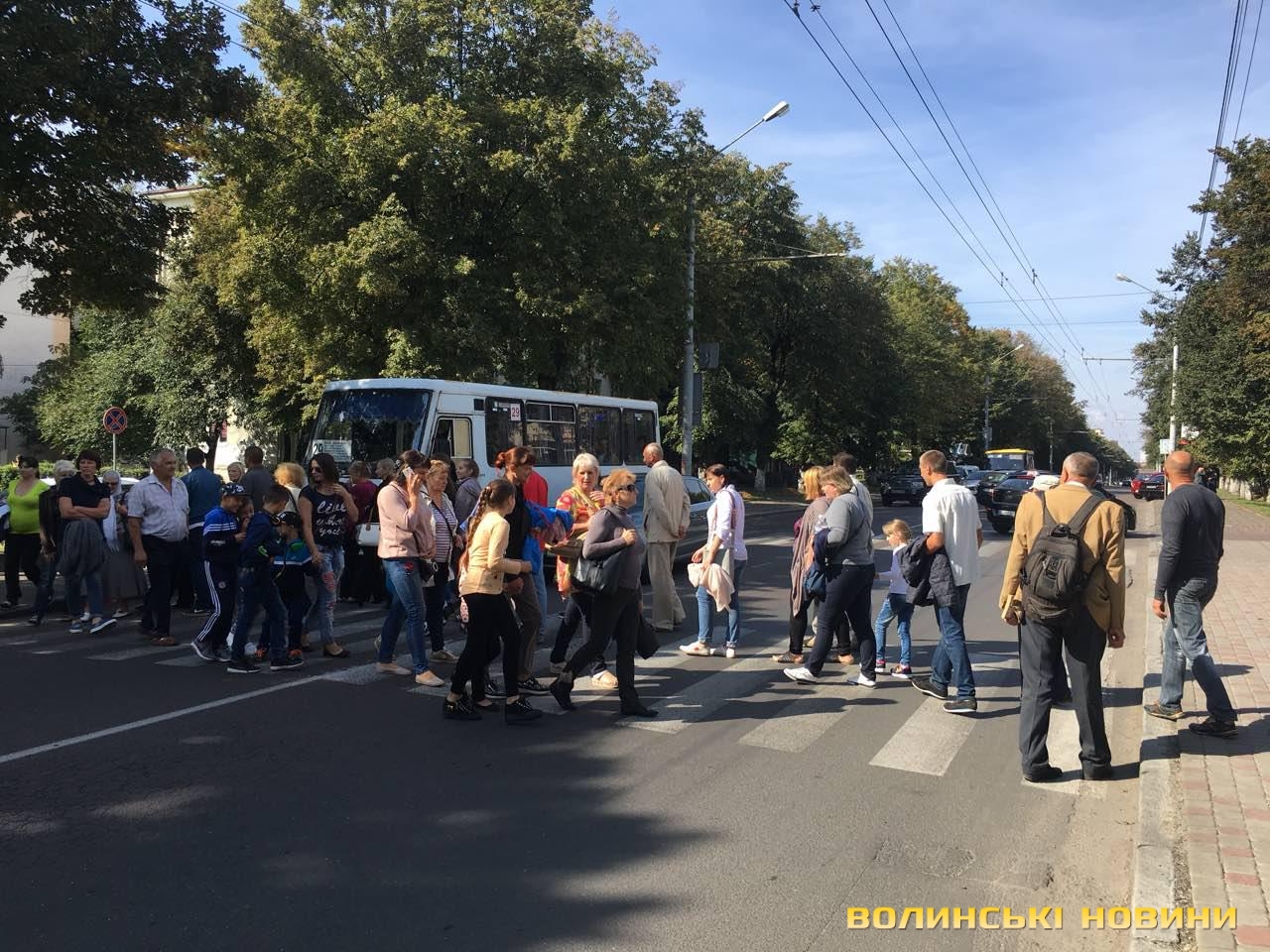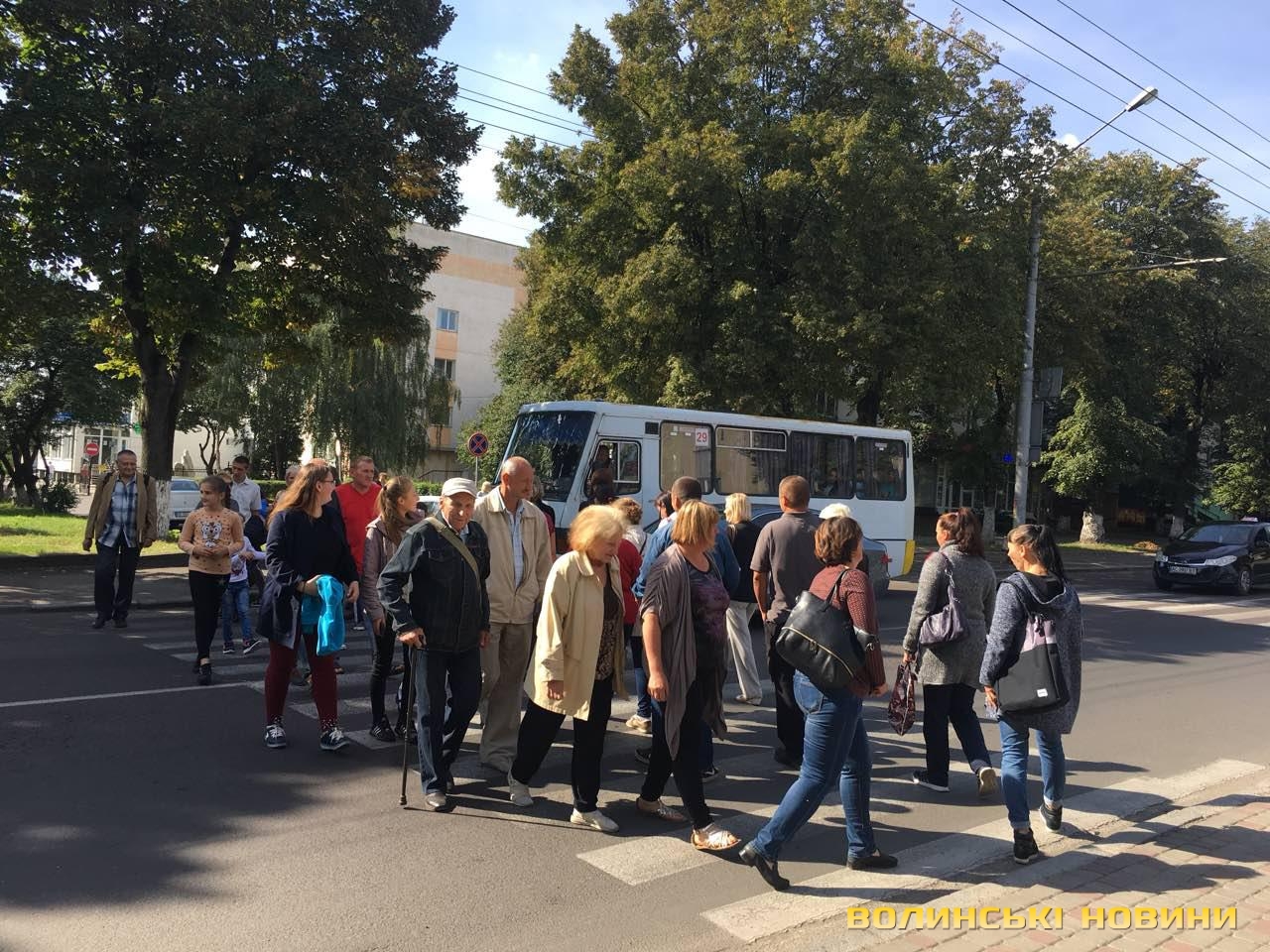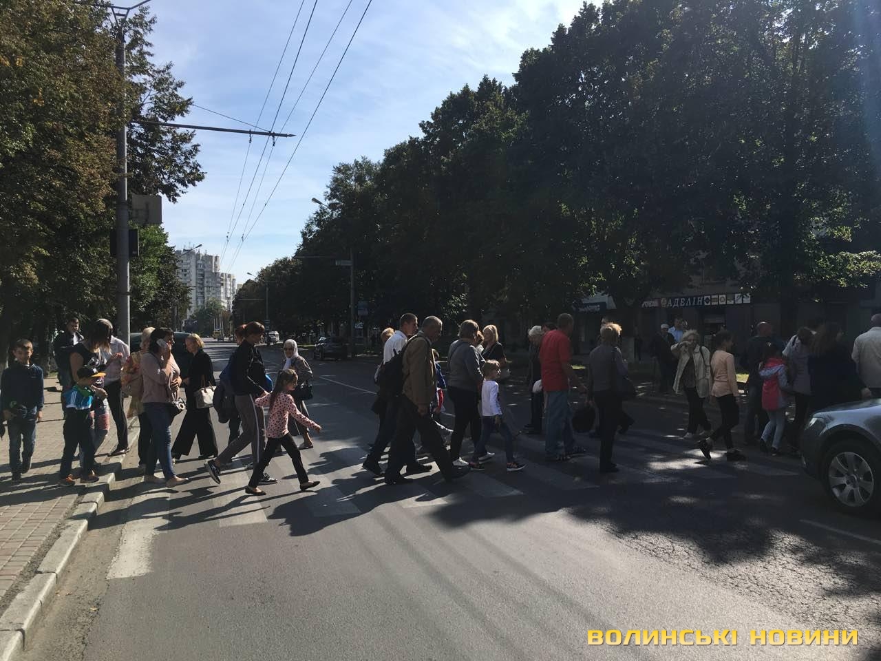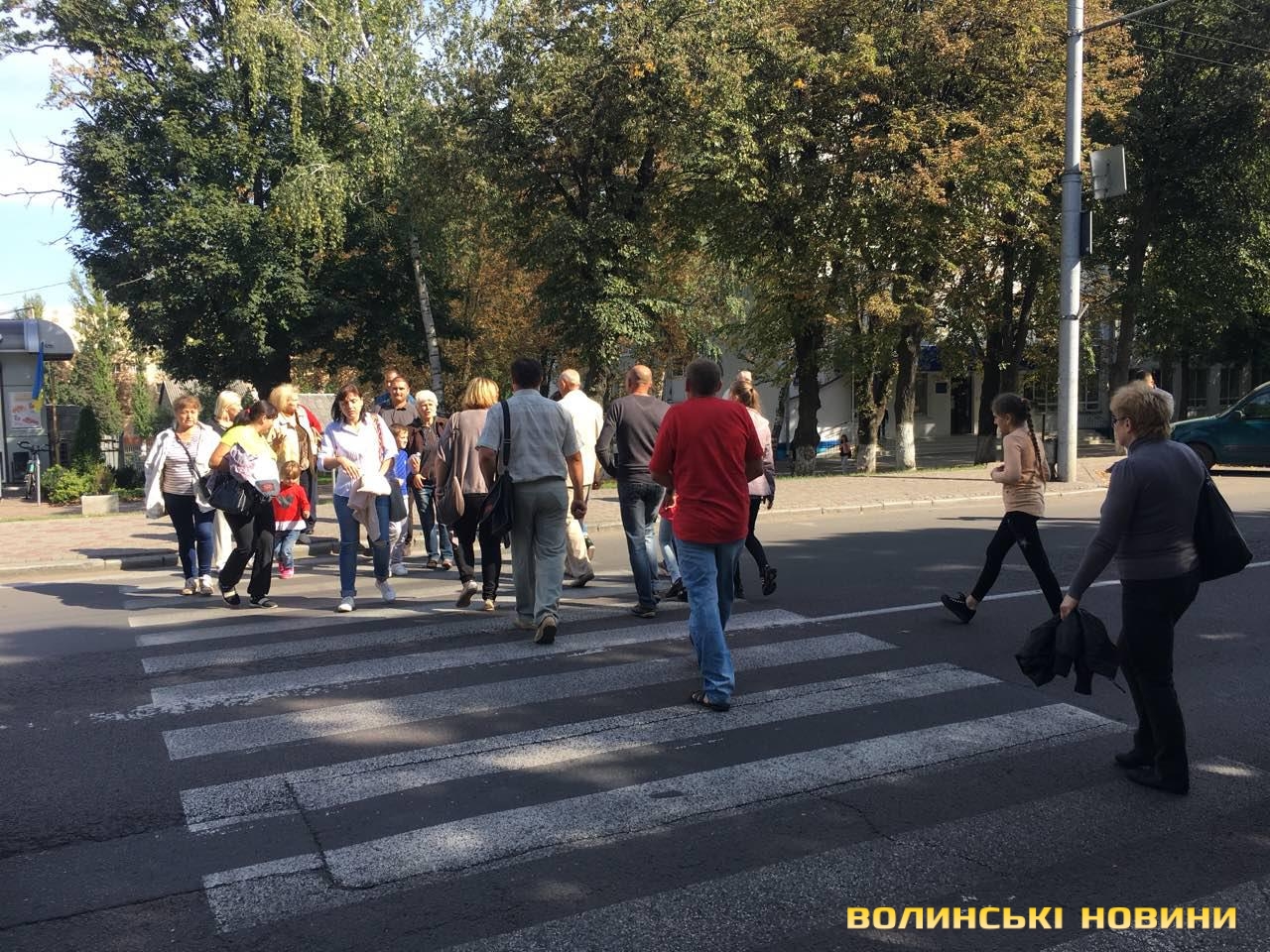 Близько 50 людей рухаються через нерегульований пішохідний перехід на проспекті Волі. Спочатку мітинг зібрався біля обласної ради, очікували, що до них вийде хтось із керівництва, кому вони зможуть висловити свої вимоги. Зауважимо, що представники Волинськії ОДА так і не вийшли до людей.