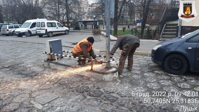 Луцькі муніципали розпочали демонтаж обмежувачів руху автотранспорту у Старому місті. Вчора розібрали бетонний блок зі світлофором та боларди на вулиці Братковського, 1.