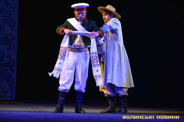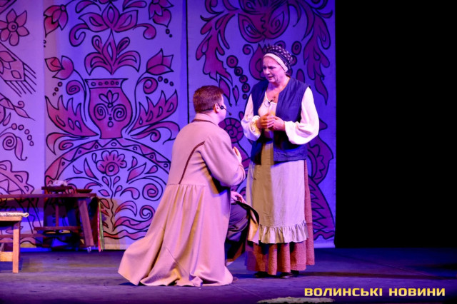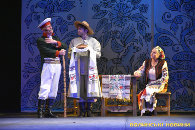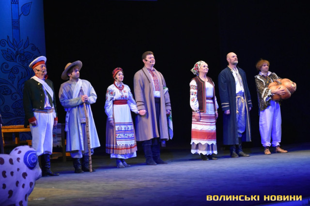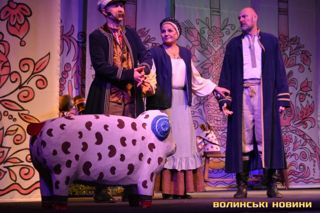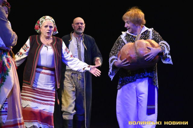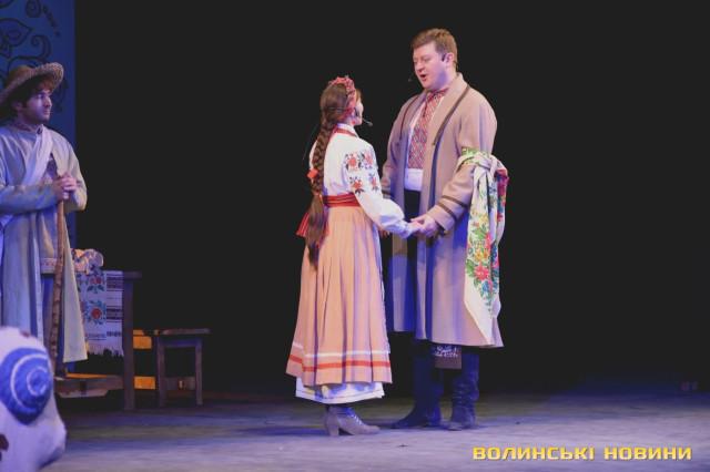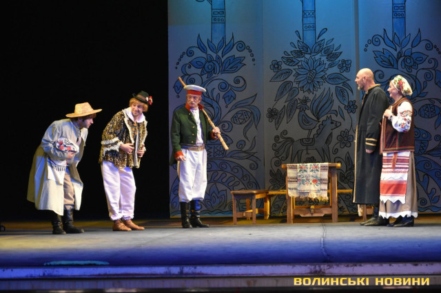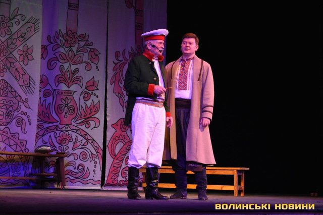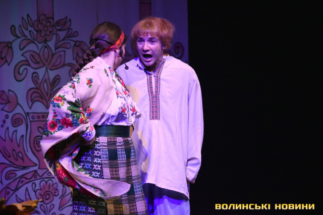 На наступні дві години глядачі перенеслися у XIX століття. Соціально-побутова комедія «Сватання на Гончарівці» поставлена за п’єсою Григорія Квітки-Основ’яненка. Тут розповідається про красиву дівчину Уляну, яку хочуть примусово видати заміж за недолугого Стецька. Хлопець був сином заможного чоловіка, тому цей шлюб був вигідний батькам нареченої. Водночас Уляна була до нестями закохана в коваля-кріпака Олексія. Але історія закінчилося щасливо для пари, адже у сватання втрутився Олексіїв дядько.Читати ще: Магічний циліндр, силач і фокуси: у Луцьку діти захисників України побували на театрально-цирковому шоу. Фото