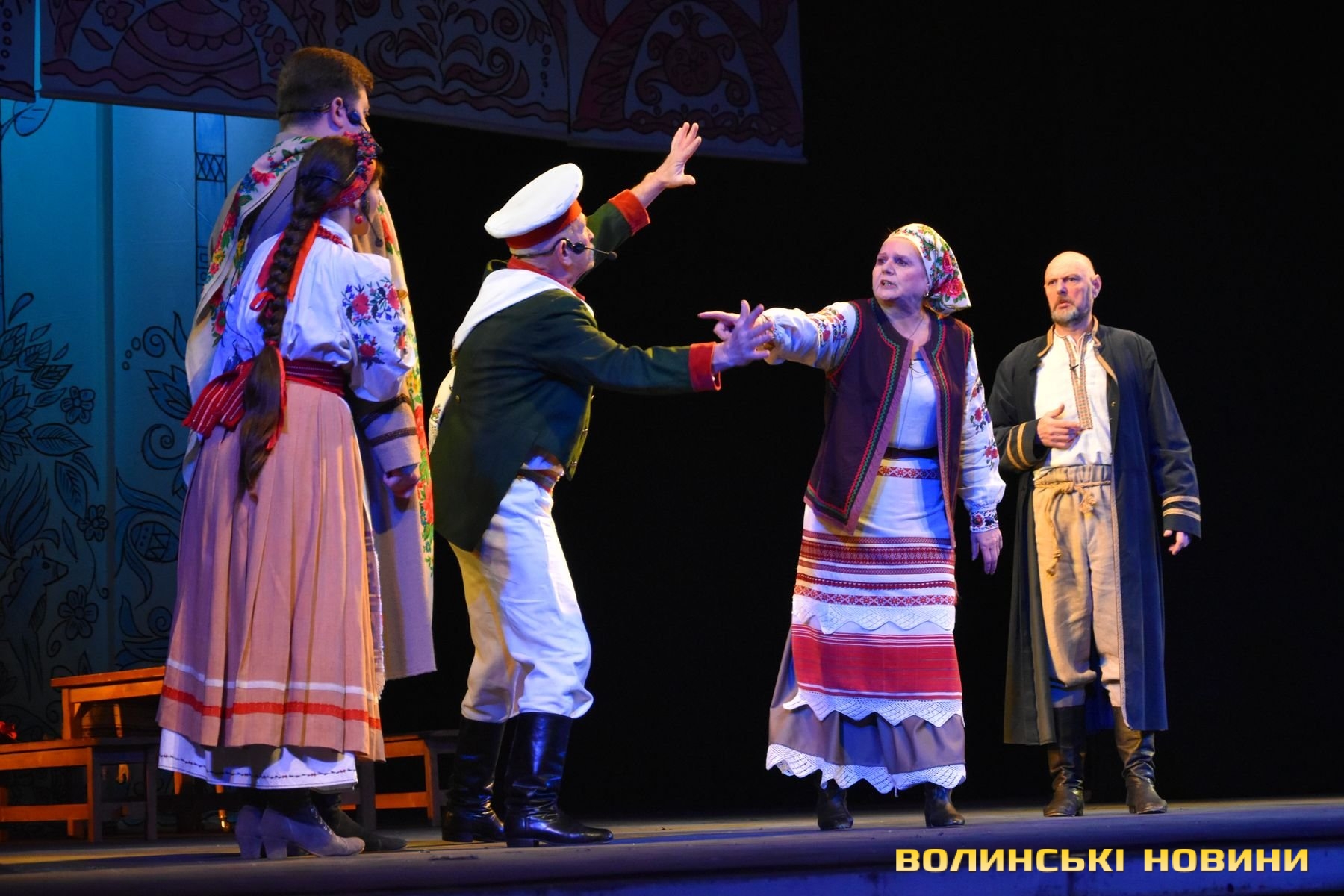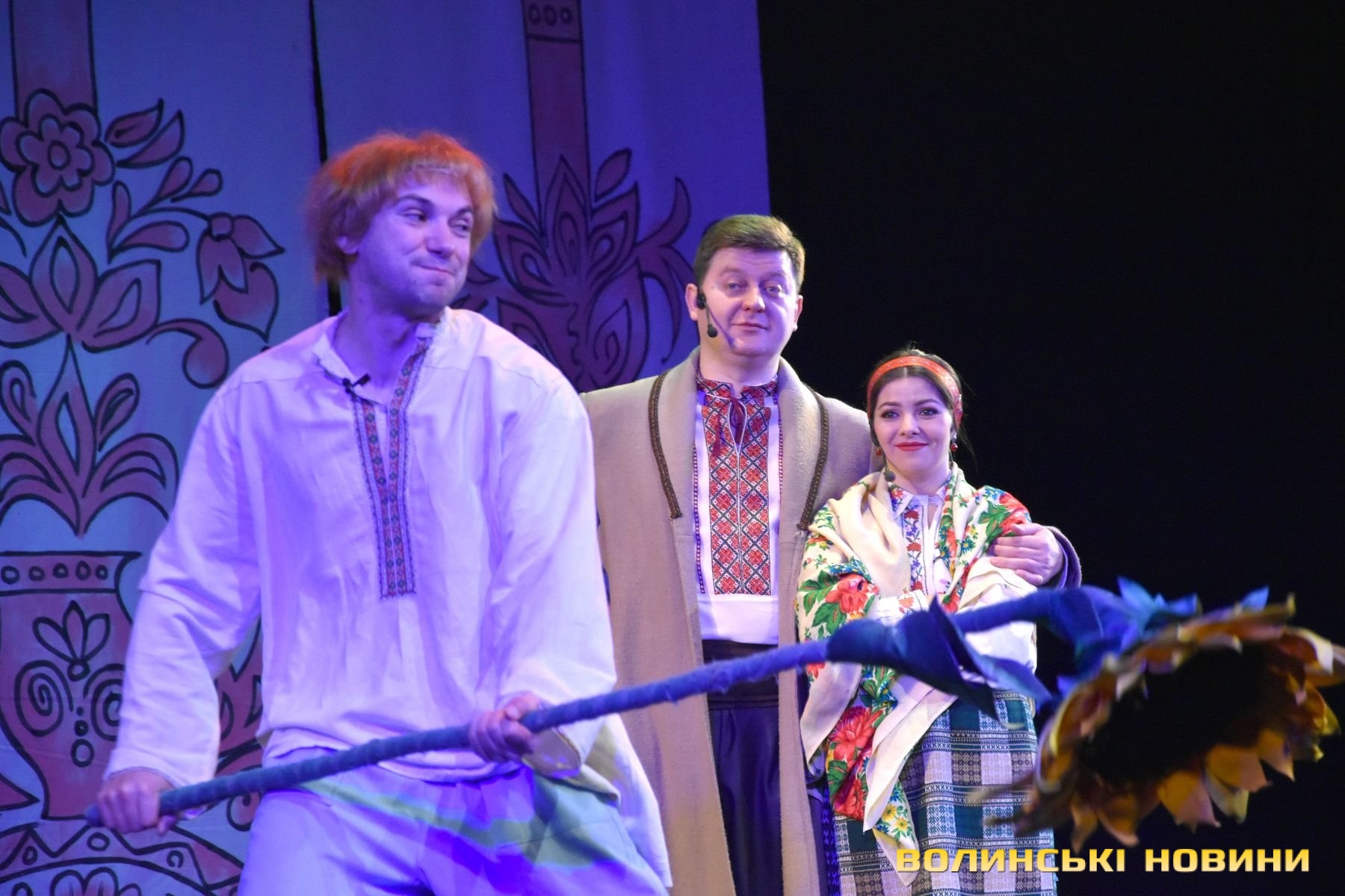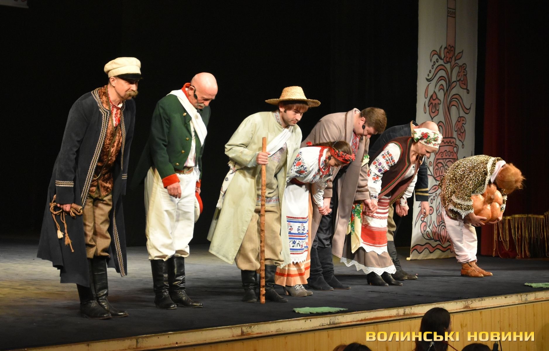 На наступні дві години глядачі перенеслися у XIX століття. Соціально-побутова комедія «Сватання на Гончарівці» поставлена за п’єсою Григорія Квітки-Основ’яненка. Тут розповідається про красиву дівчину Уляну, яку хочуть примусово видати заміж за недолугого Стецька. Хлопець був сином заможного чоловіка, тому цей шлюб був вигідний батькам нареченої. Водночас Уляна була до нестями закохана в коваля-кріпака Олексія. Але історія закінчилося щасливо для пари, адже у сватання втрутився Олексіїв дядько.Читати ще: Магічний циліндр, силач і фокуси: у Луцьку діти захисників України побували на театрально-цирковому шоу. Фото