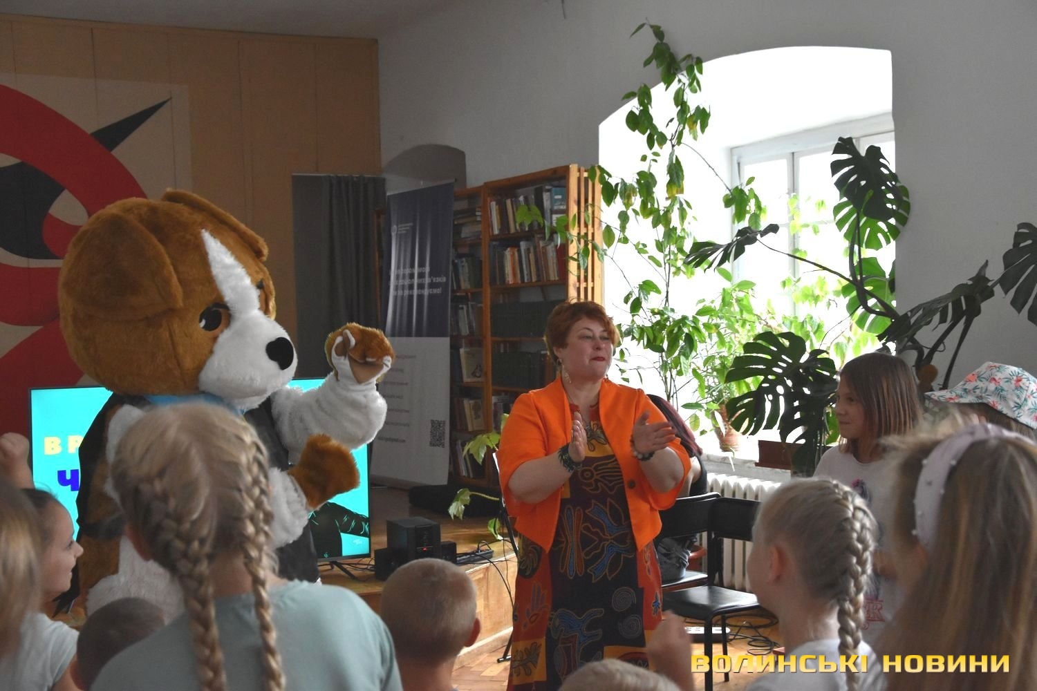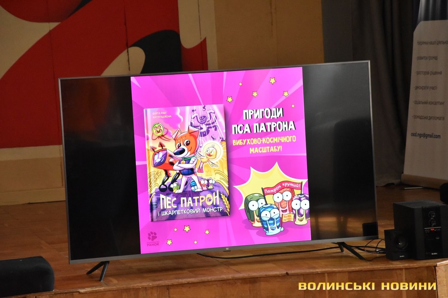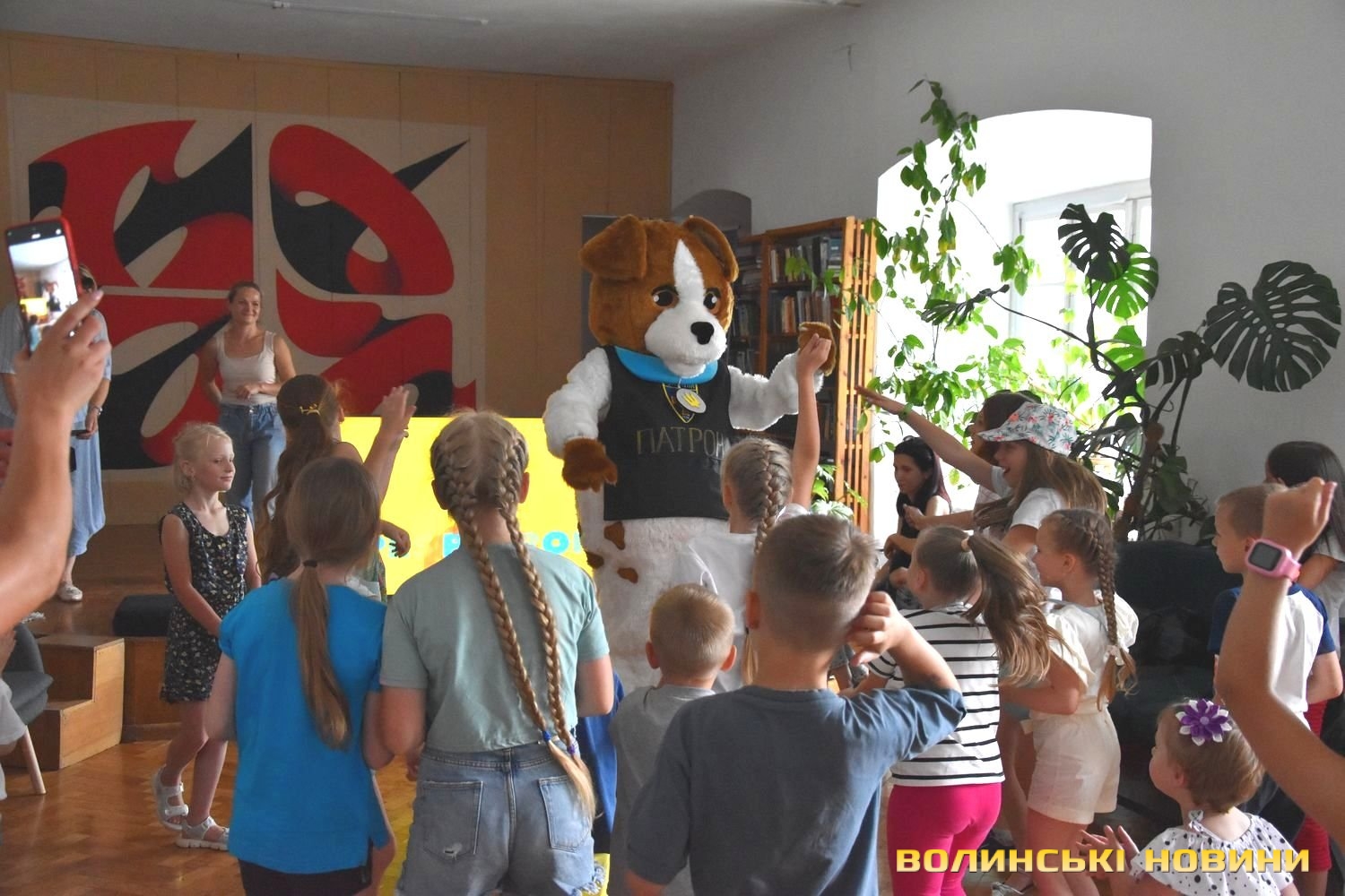 «Діти дуже вразливі, сьогодні вони переживають так само, як і дорослі. Вони багато розуміють і увесь час повинні мати якусь підтримку. А читання книги – це не лише підтримка, а й певною мірою терапія. З одного боку, ми маємо підтримувати дітей, з іншого – вони мають розважатися та відволікатися. Гадаю, комікс відповідає обом критеріям», – відзначила Юліта Ран.На презентації книги діти створювали вітальну листівку для пса Патрона, якому днями виповнилося чотири роки. Юліта Ран пообіцяла передати дитячі малюнки власнику собаки. А згодом у приміщення бібліотеки увірвався сам чотирилапий, зробивши читальну залу танцювальним майданчиком.Звісно, це був не той самий джек-рассел-тер’єр, однак радості в дітлахів він викликав не менше. Пес Патрон одразу потонув в обіймах малечі, яка радо віталала улюбленця, а згодом разом із ним пустилася в танок під однойменну пісню групи «Karta Svitu». Як з’ясувалося, кожна дитина знає, «хто тримає цей район».Читати ще: І актори, і діти на сцені: до Луцька з виставою завітав полтавський театр ляльок. Фото