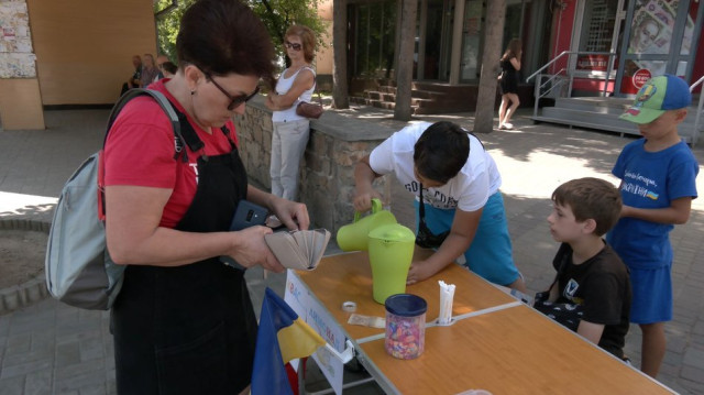 Діти продають шість літрів квасу і приблизно десять літрів лимонаду щодня. Частина перехожих кладуть гроші, але від напоїв відмовляються.Вторговані гроші діти передають волонтерам, які виготовляють сухпайки для військових.