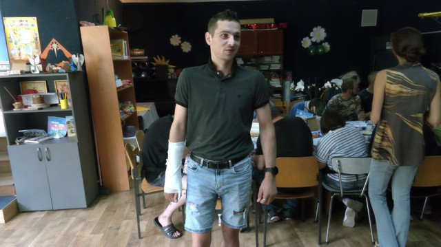 Військовослужбовець Віталій з Черкас майже місяці в одному із медичних закладів Волині лікує осколкове поранення ноги. Чоловік вже не вперше боронить Україну. Каже: арттерапевтичні заняття допомагають йому розважитися.