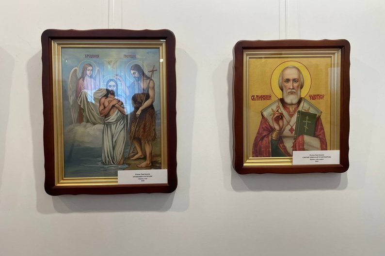 Глядачам представлено 18 сучасних образів у традиціях класичного живопису молодих волинських художниць Іванни та Ксенії Дацюк і Олени Звягінцевої. Серед них, зокрема, «Свята великомучениця Варвара», «Святий благовірний князь Мстислав» та ікони, написані для храму села Затурці Володимирського району за останні десять років. Деякі – з часточками мощів святих.У доробку мисткинь є зображення нещодавно канонізованих угодників Божих: праведної Єлизавети (Галшки Гулевичівни), преподобних Олексія Карпаторуського, Меркурія Бригінського та інших. А загалом це розписи храмів Києва, написання образів для іконостасів, цикл історично-жанрових портретів, присвячених правителям Луцька, роботи для музеїв, приватних колекцій в Україні та за її межами.Роботи художниць допомагають шанувальникам прекрасного духовно збагатитися, відволіктися від страхіть війни.