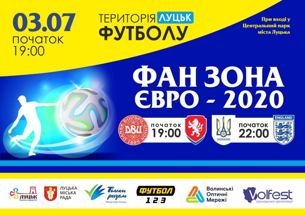 «На численні прохання лучан – шанувальників футболу – організували фан-зону поруч з центральним входом в Центральний парк. Перегляд двох матчів: Чехія-Данія (19:00) та Україна-Англія (22:00). Запрошуємо!