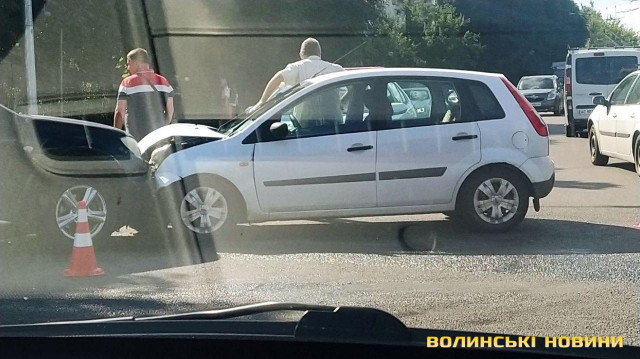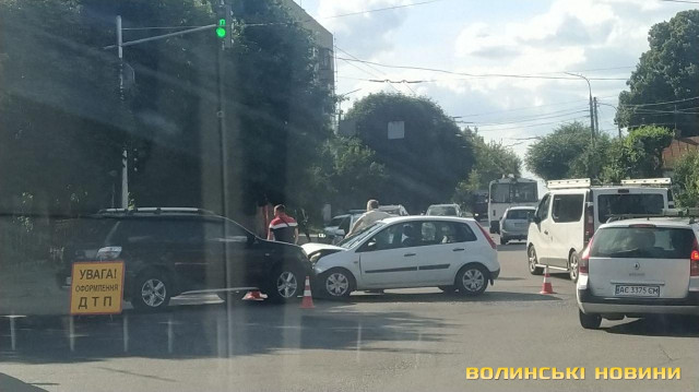 На перехресті вулиць Потебні та Гнідавської в Луцьку лоб у лоб зіштовхнулися легковики Ford та Mitsubishi.