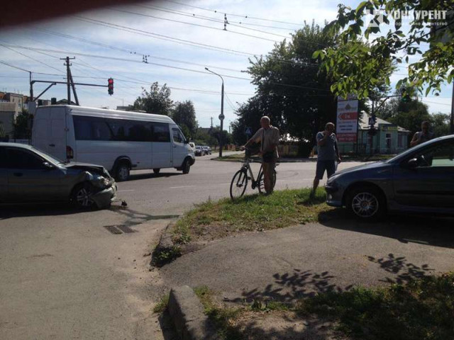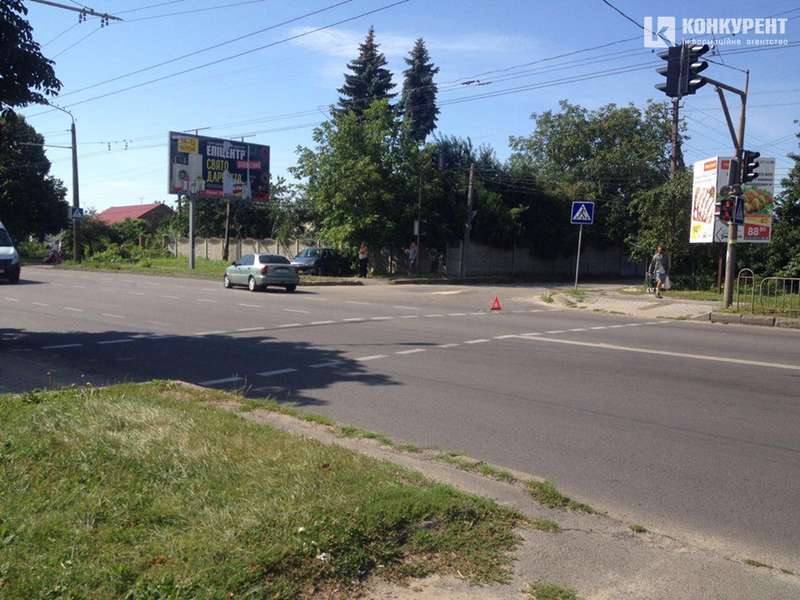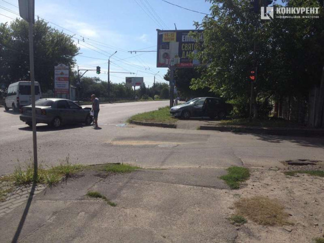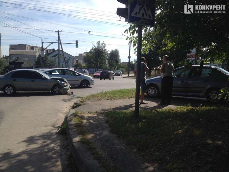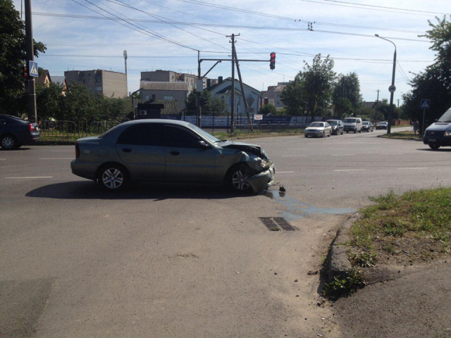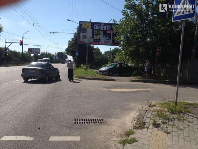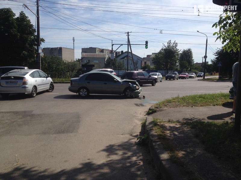 На перехресті вулиць Чернишевського і Ковельської у Луцьку зіткнулися дві автівки. Одну із них внаслідок зіткнення винесло на тротуар.