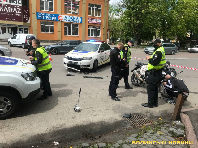 У Луцьку – ДТП за участю мотоцикліста та авто поліцейських. Фото